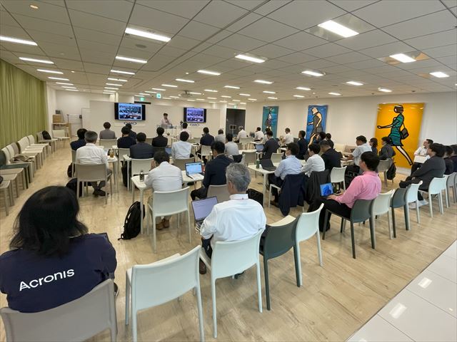 続いての講演では、アクロニス・ジャパンの後藤さんから、「サイバー脅威の現状と日本での対応」と題してお話いただきました。